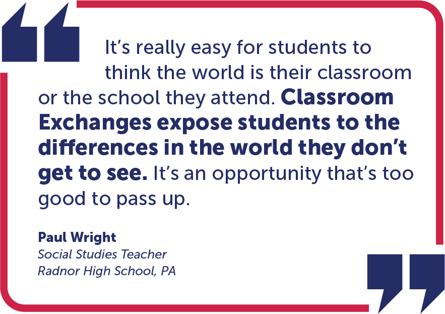 Classes interact directly with other classes across the country and apply critical thinking and listening skills to a constitutional issue that matters to them. Join the thousands of teachers and students who have already participated in Classroom Exchanges.